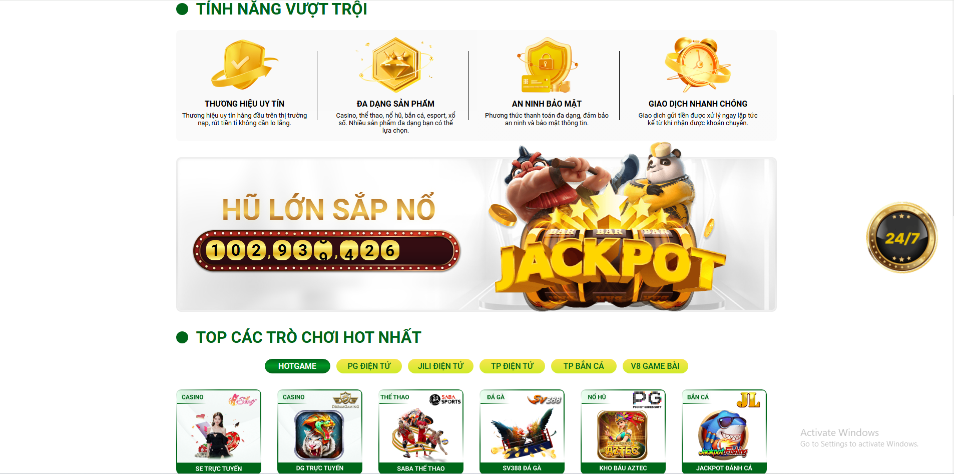 - Nổ Hũ: Tham gia các trò chơi Nổ Hũ với đồ họa tuyệt đẹp và hiệu ứng âm thanh sống động. Một cú nhấp chuột có thể mang lại cho bạn những phần thưởng khổng lồ và giải Jackpot hấp dẫn.